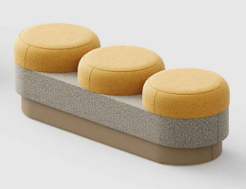 Featuring distinct round seating units, this three-seater bench introduces a softer seating rhythm within linear layouts. The separated cushion design encourages individual comfort while maintaining a cohesive base structure. It works well in open environments where informal seating and spatial flexibility are required.