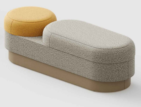 This version blends different cushion shapes into one unified bench, creating a subtle variation in seating experience. The contrast between forms adds depth without disrupting the overall harmony, making it suitable for interiors that value both function and quiet design expression. It adapts easily to diverse spatial compositions.